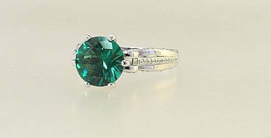 Sterling Silver 3ct Lab Grown Emerald Ring, Size 7.
