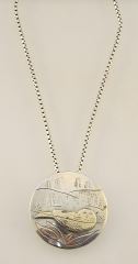 10K (marked) White & Yellow Gold Pendant (5.37g) on .925 Chain, 19"L.
