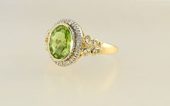 LOT 35 14K (marked) White & Yellow Gold Peridot & Diamond Ring, Size 8 1/4, 4.2g. Estimate: $200 - $300 Sold For: $600 Auction Date: Tuesday, August 13 2024 at 4:00 PM