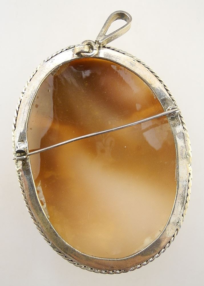 LOT 142 Antique Cameo in Silver Coloured Metal Frame, 2 3/8"h, 30.87g. Estimate: $200 - $300 Sold For: $200 Auction Date: Tuesday, August 13 2024 at 4:00 PM