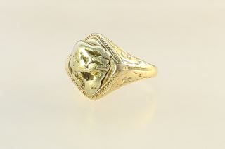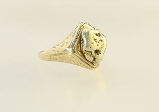 LOT 18 Birks 14K (marked) Yellow Gold & Whitehorse Nugget Ring, Size 9, 11.23g. Estimate: $300 - $400 Sold For: $600 Auction Date: Tuesday, August 13 2024 at 4:00 PM