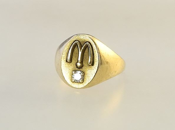 LOT 148 McDonald's 10K (marked) Yellow Gold & Diamond 30th Anniversary Ring, Size 6 3/4, 5g. Estimate: $80 - $120 Sold For: $190 Auction Date: Tuesday, August 13 2024 at 4:00 PM