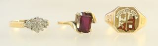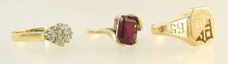 LOT 88 Three 10K (marked) Yellow Gold Rings , Sizes 5 1/2 - 8, 10.4g. Estimate: $200 - $300 Sold For: $325 Auction Date: Tuesday, August 13 2024 at 4:00 PM