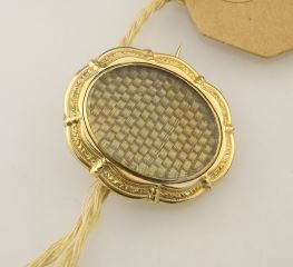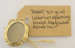 LOT 116 Victorian 9c (tested) Yellow Gold Mourning Brooch, 1 3/8"h, 6.5g. Estimate: $200 - $300 Sold For: $150 Auction Date: Tuesday, August 13 2024 at 4:00 PM
