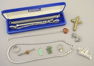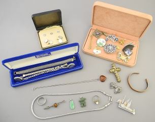 LOT 224 Collection of Estate Jewelry Items Including Sterling / Plated / Costume / Jade / Various. Estimate: $60 - $100 Sold For: $60 Auction Date: Tuesday, August 13 2024 at 4:00 PM