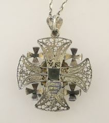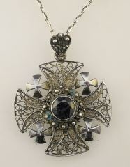 Vintage Silver (marked 1000) Jerusalem Cross Pendant on 18" Chain , 22g, with Box.