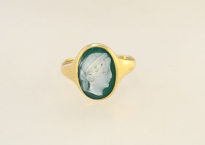 LOT 177 18K Hallmarked Yellow Gold & Glass Cameo Ring, Size 8, TW 5.39g. Estimate: $200 - $300 Sold For: $350 Auction Date: Tuesday, August 13 2024 at 4:00 PM