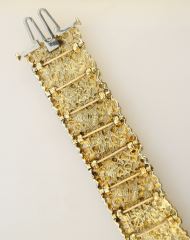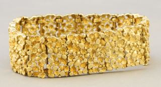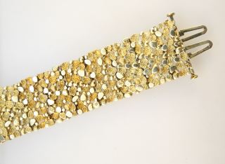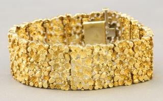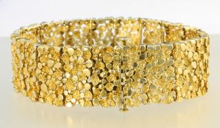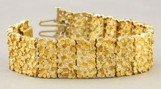 LOT 57 14K Gold Link Bracelet, 21mm x 7" With Textured Nugget Style Finish, 55.8 grams. Estimate: $2,000 - $2,500 Sold For: $2,500 Auction Date: Tuesday, August 13 2024 at 4:00 PM