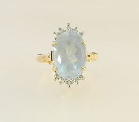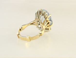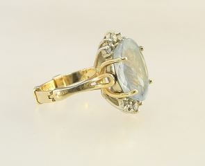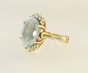 14K (Marked) Yellow Gold Natural 5.85 Ct Aquamarine & Diamond Ring, Size 4 1/2 Adjustable, 5.7