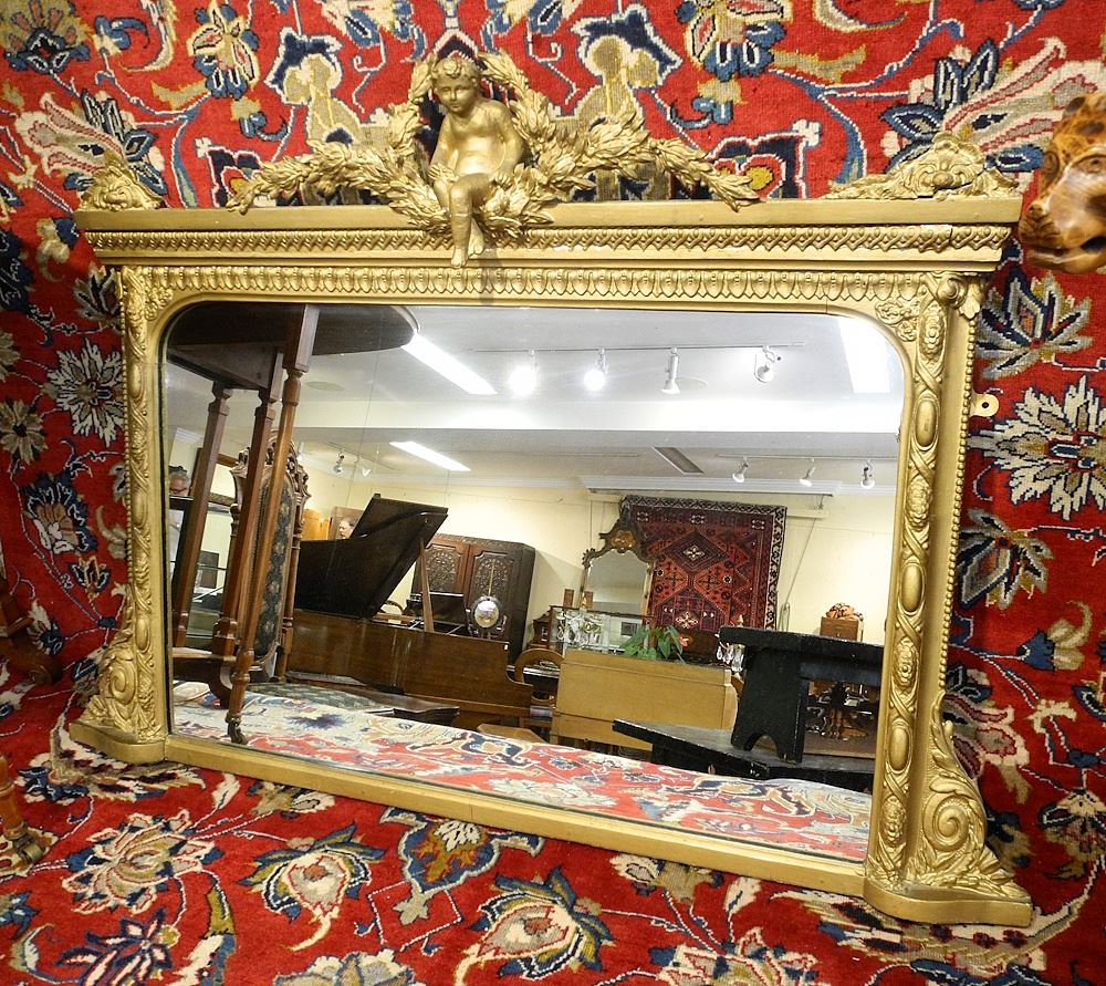 LOT 77 19th C. Giltwood Over Mantle Mirror Surrounded by a Putto, 30 3/4" x 44" x 4". Estimate: $250 - $350 Auction Date: Tuesday, August 13 2024 at 4:00 PM