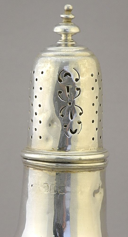 LOT 10 Brittania Standard Silver Sugar Caster, 6 1/2"h, 148g (as found). Estimate: $120 - $150 Sold For: $120 Auction Date: Tuesday, August 13 2024 at 4:00 PM