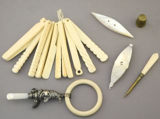LOT 242 Hallmarked Silver "Punch" Teething Ring with Teething Sticks & Sundries , 5 1/4"h, NO EXPORT. Estimate: $60 - $100 Sold For: $50 Auction Date: Tuesday, August 13 2024 at 4:00 PM
