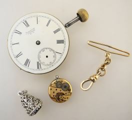 Waltham Pocket Watch, Steling Silver Fob, Dog Nose Clip & Omega Watch Part.