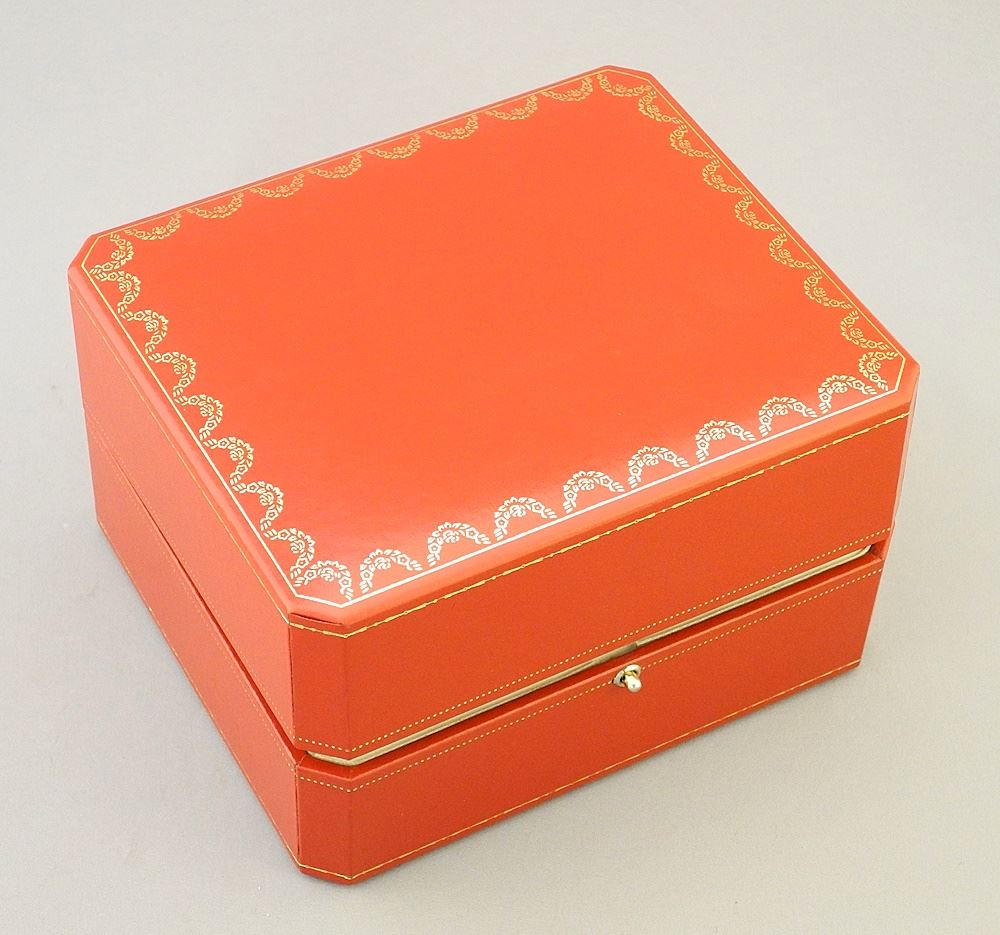 Cartier Watch Box, 3 1/2" x 6" x 5 1/8" (hinge noted).