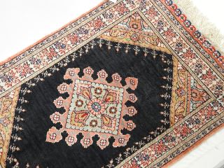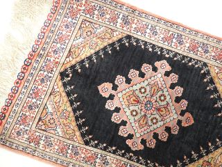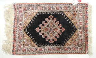 LOT 279 Silk Sogucak Mat, 1'5" x 2'5", Pink & Black Ground. Estimate: $100 - $150 Sold For: $50 Auction Date: Tuesday, February 11 2025 at 4:00 PM