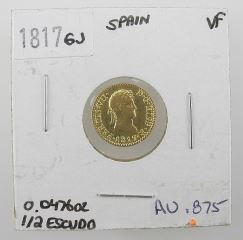 LOT 260 Spain 1817 .875 Half Escudo Gold Coin. Estimate: $100 - $150 Sold For: $160 Auction Date: Tuesday, February 11 2025 at 4:00 PM
