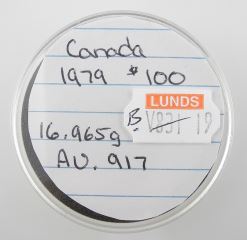 LOT 257 Canada 1979 .917 $100 Gold Coin, 16.96g. Estimate: $800 - $1,200 Sold For: $1,500 Auction Date: Tuesday, February 11 2025 at 4:00 PM