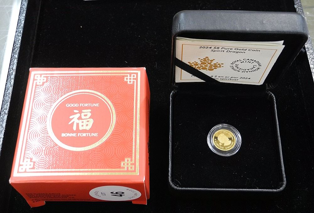 2024 Canada $8 Gold Spirit Dragon Coin with Case.