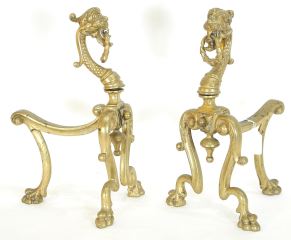 LOT 48 Pair of 19th C. Brass Andirons, 13 3/4"h. Estimate: $80 - $100 Sold For: $90 Auction Date: Tuesday, February 11 2025 at 4:00 PM