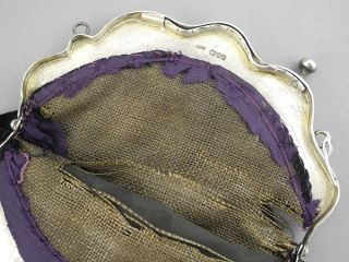 LOT 253 Hallmarked Silver Clasp Ladies Purse London/1901, 8 7/8" x 7 7/8", 175g (fraying noted). Estimate: $200 - $220 Auction Date: Tuesday, February 11 2025 at 4:00 PM