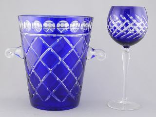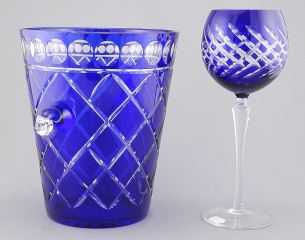 LOT 159 Bohemian Cobalt Overlay Wine Cooler & Single Goblet. Estimate: $80 - $100 Sold For: $70 Auction Date: Tuesday, February 11 2025 at 4:00 PM