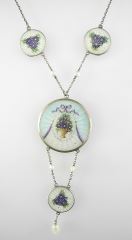 LOT 272 Silver (marked 925) Necklace with Four Enamel Pendants & Mother of Pearl Enhancers. Estimate: $80 - $120 Sold For: $80 Auction Date: Tuesday, February 11 2025 at 4:00 PM
