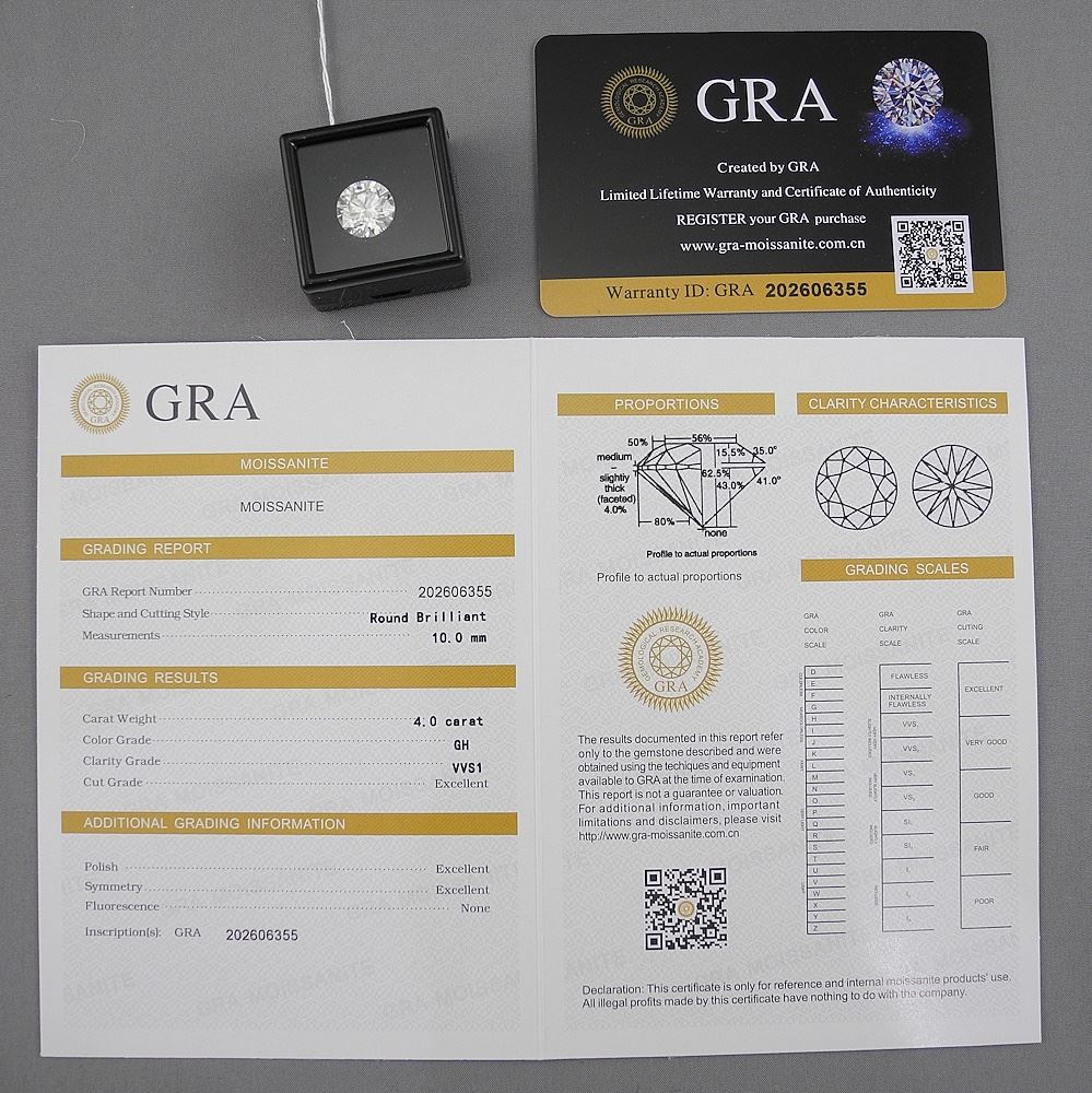 LOT 288 4ct Loose Moissanite with Certificate. Estimate: $50 - $100 Auction Date: Tuesday, February 11 2025 at 4:00 PM