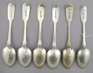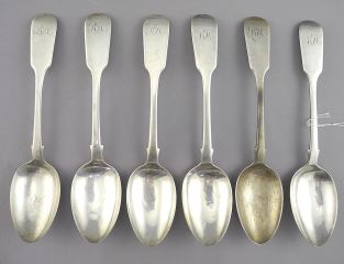 LOT 125 Six Georgian Silver Spoons Monogrammed, 7"L, 225g. Estimate: $150 - $200 Sold For: $200 Auction Date: Tuesday, February 11 2025 at 4:00 PM
