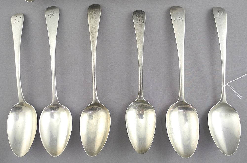 Ten Various Georgian Silver Spoons, 6 3/8"L, 374g.