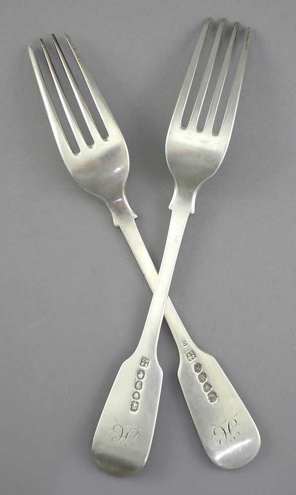 Twelve Georgian Silver Forks, 7"L, 624g.