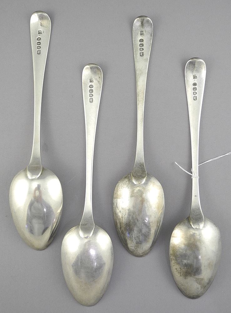 LOT 24 Four Georgian Silver Table Spoons, 8 3/4"L, 258g. Estimate: $180 - $250 Sold For: $225 Auction Date: Tuesday, February 11 2025 at 4:00 PM
