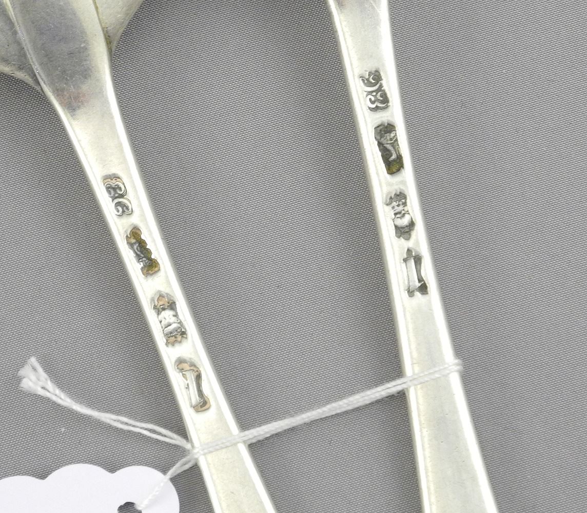 Pair of Georgian Silver Tablespoons, Ebenezer Coker/London/1746, 8"L, 126g.