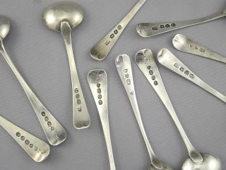 LOT 43 Ten Georgian Silver Cellar Spoons, 3 1/2 - 4"L, .94g. Estimate: $100 - $200 Sold For: $150 Auction Date: Tuesday, February 11 2025 at 4:00 PM