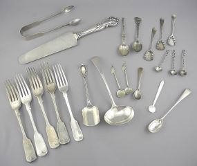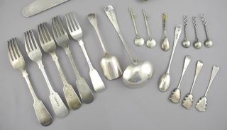LOT 263 Collection of Georgian & Other Sterling Silver Cutlery Items, Approx. 425g. Estimate: $250 - $350 Sold For: $375 Auction Date: Tuesday, February 11 2025 at 4:00 PM
