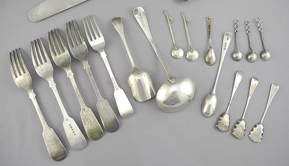 LOT 263 Collection of Georgian & Other Sterling Silver Cutlery Items, Approx. 425g. Estimate: $250 - $350 Sold For: $375 Auction Date: Tuesday, February 11 2025 at 4:00 PM