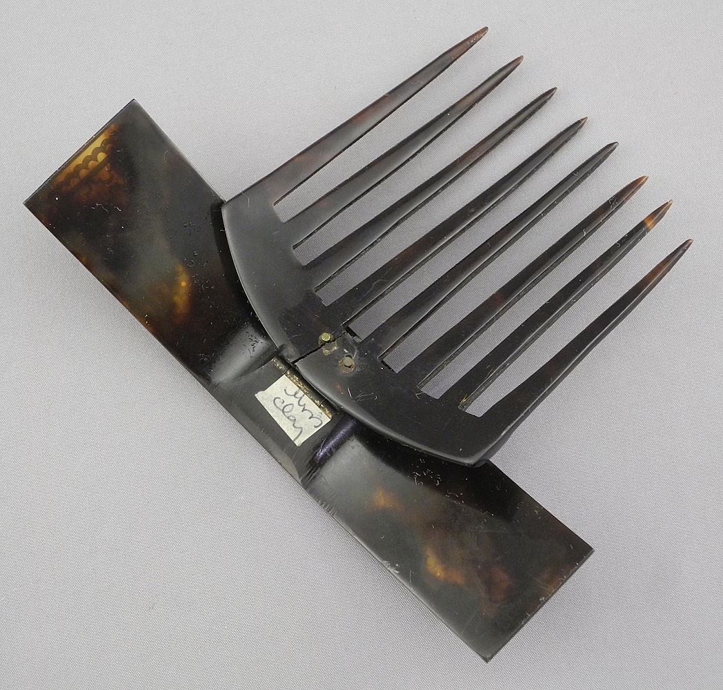 Gold Quatrefoil Inlaid Tortoiseshell Hair Comb, 4 3/8"w, NO EXPORT (crack noted).