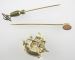 Two 14K (marked) Gold Stick Pins (TW 3.67g) & Enameled Gold-Tone Galleon.