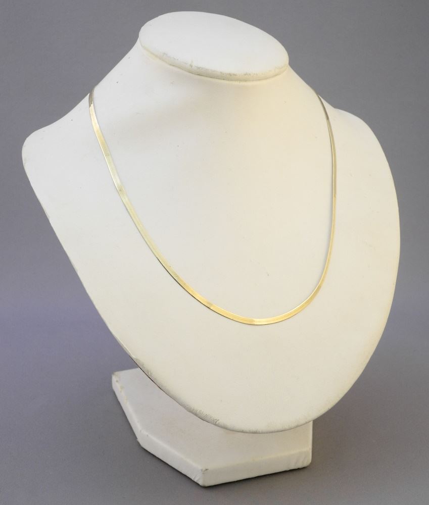 LOT 119 14K Herring Bone Link Necklace, 17 1/2" long with box, 4.12 gr. Estimate: $200 - $300 Sold For: $230 Auction Date: Tuesday, February 11 2025 at 4:00 PM