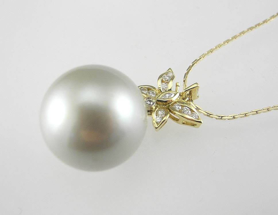 LOT 56 18K Diamond Set Butterfly & Pearl Pendant (10g) on 14K chain (285g). Estimate: $800 - $1,200 Auction Date: Tuesday, February 11 2025 at 4:00 PM