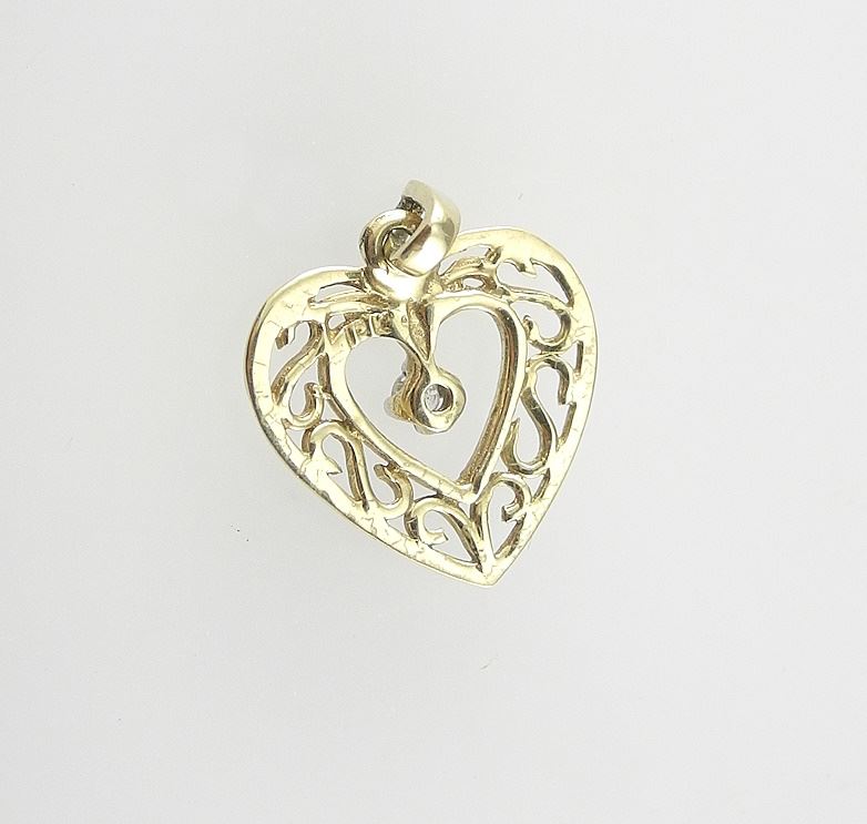 LOT 177 14K Heart Shaped Pendant Set with Small Diamond, 1.0g. Estimate: $60 - $90 Sold For: $50 Auction Date: Tuesday, February 11 2025 at 4:00 PM