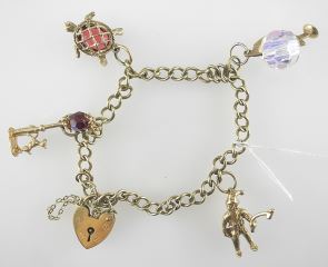 LOT 132 Gold Coloured Chain with Various Gold Charms, 17.96g. Estimate: $180 - $220 Sold For: $160 Auction Date: Tuesday, February 11 2025 at 4:00 PM