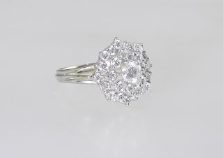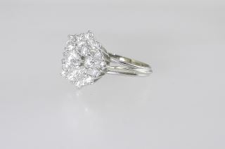 White Gold Diamond Cluster Ring, Faintly Marked, Size 7, 4.14g.