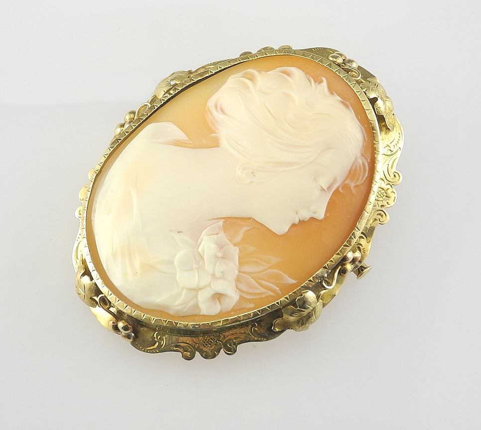 Rose & Cream Cameo Brooch with Gold Tone Surround, 2 1/4" x 2".