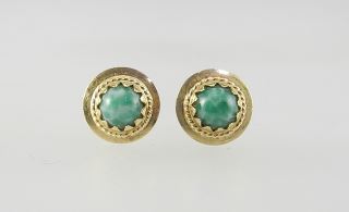 LOT 112 Pair of Jade & 18K Gold (marked 750) Earrings, 11mm Diameter, 3.18g. Estimate: $100 - $200 Sold For: $140 Auction Date: Tuesday, February 11 2025 at 4:00 PM