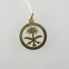 LOT 176 14K (tested) Saudi Arabia Emblem Gold Pendant with 750 (marked) Bail. Estimate: $100 - $150 Sold For: $100 Auction Date: Tuesday, February 11 2025 at 4:00 PM