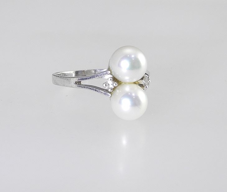 18K (marked 750) White Gold Ring with Pearls, Size 8 1/2, 5.3g.
