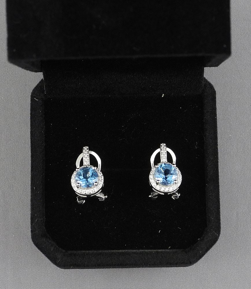 1ct Swiss Blue Topaz Lever Back Earrings Mounted in .925 Sterling with White Gold Overlay.