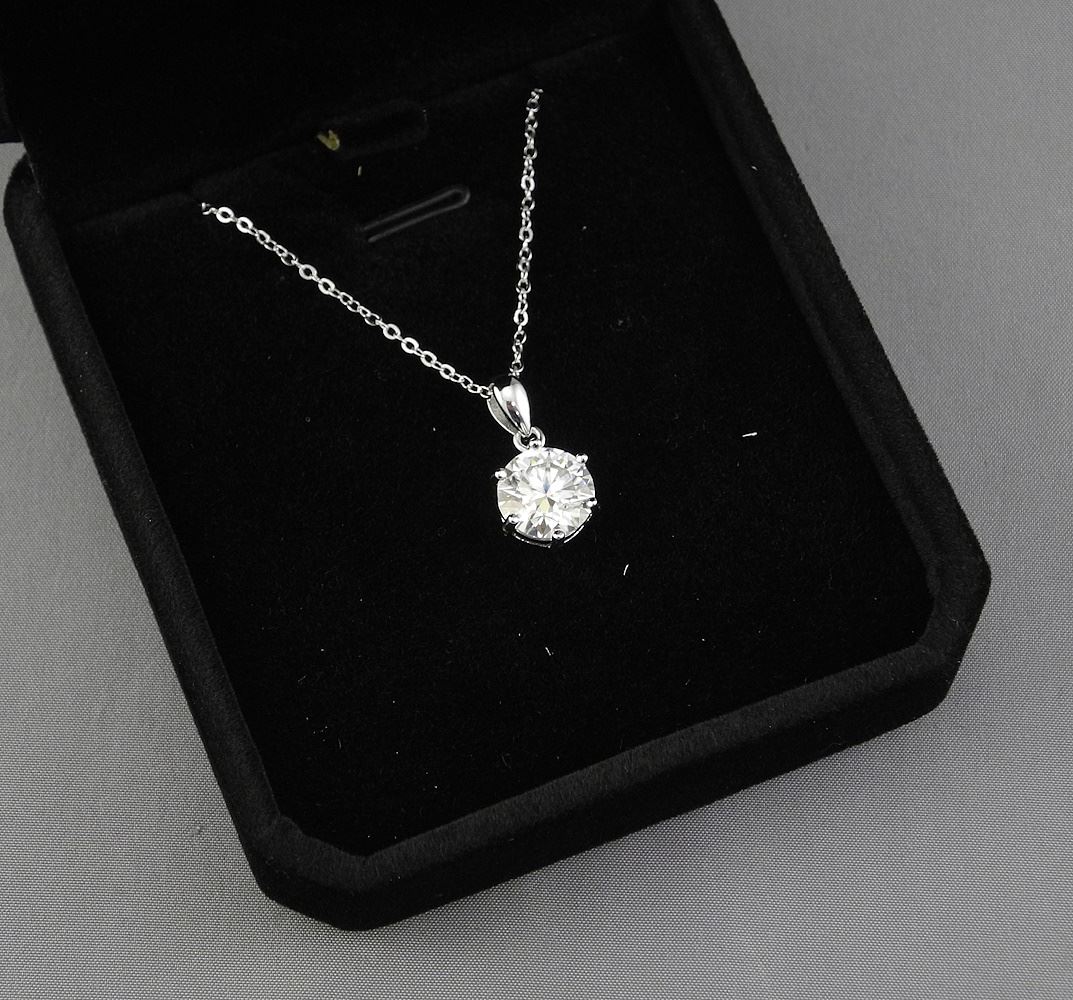 LOT 296 3ct Moissanite Necklace in .925 Sterling with White Gold Overlay. Estimate: $50 - $100 Sold For: $30 Auction Date: Tuesday, February 11 2025 at 4:00 PM