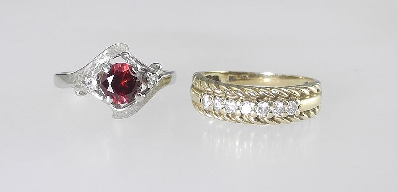LOT 140 Two 10K (marked) White & Yellow Gold Rings, Sizes 6 1/4 & 7, TW 6.1g. Estimate: $200 - $300 Sold For: $275 Auction Date: Tuesday, February 11 2025 at 4:00 PM