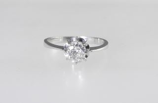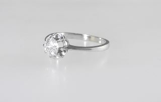 18K (marked 750) White Gold Solitaire Diamond Ring, Size 9 1/4, 3.4g.